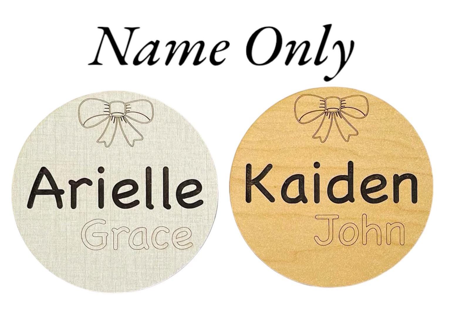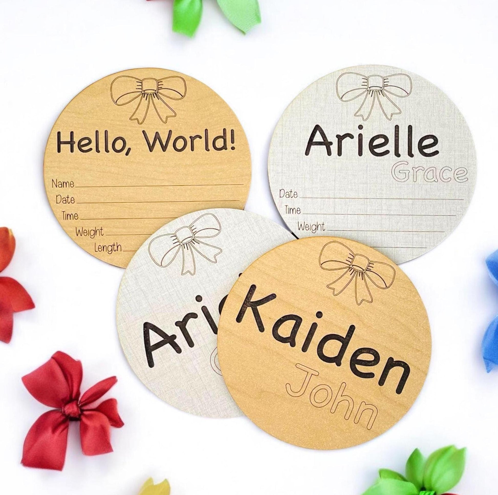 Baby Bow Stats Keepsake Round Pretty Bow Newborn Hospital Photo Prop Cute Hello World Baby Shower Gift Custom Fun Engraved Name Birth Stat
