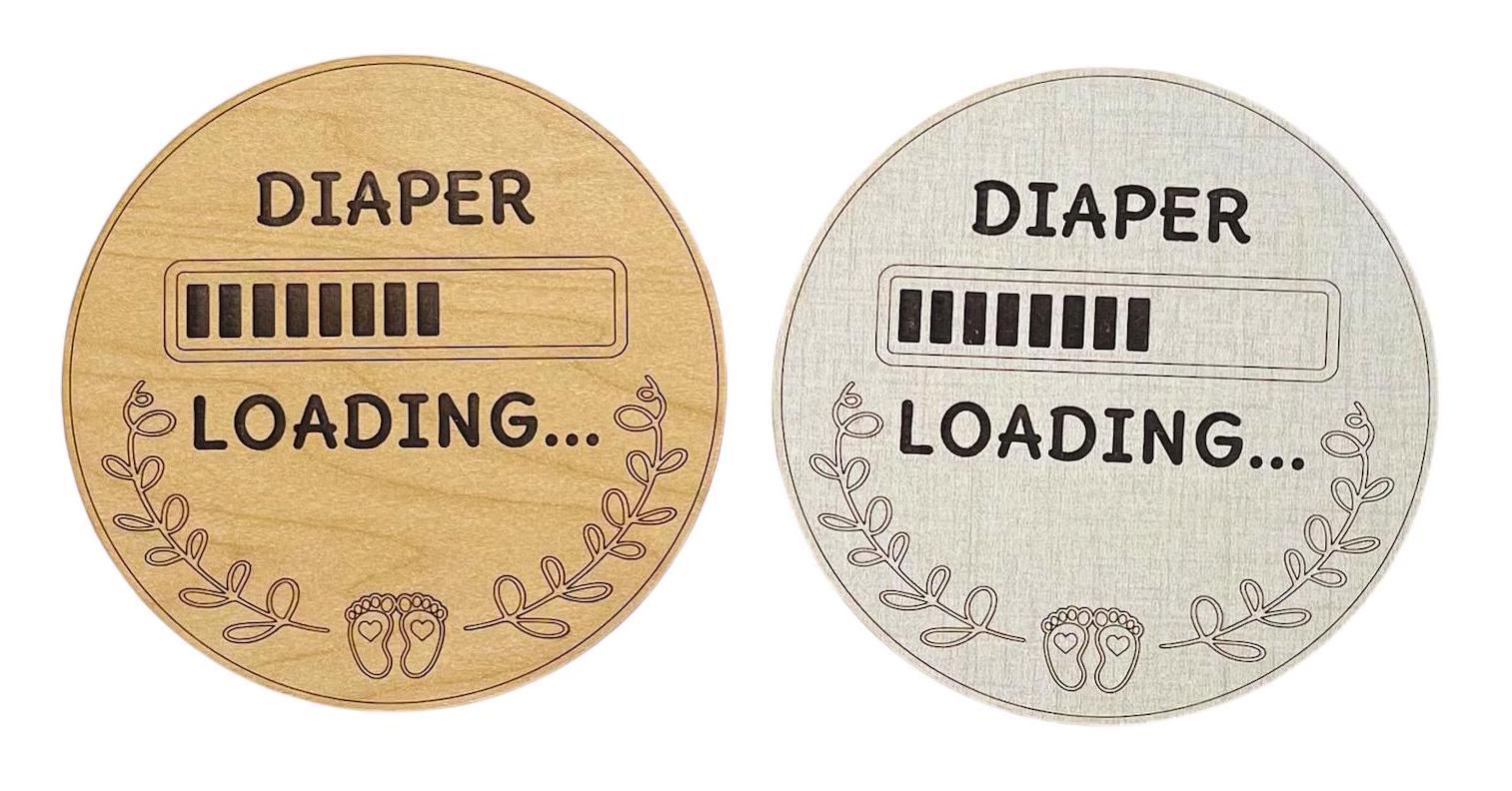 Diaper loading! Funny baby hospital, nursery, or crib photo prop background sign with an appropriate diaper-related message and "loading" graphic. The humorous wooden round will bring a smile to anyone who sees your resulting photo. Show off your newborn in style with a cute, handmade item that you'll treasure forever. Ideal baby shower or new baby gift!