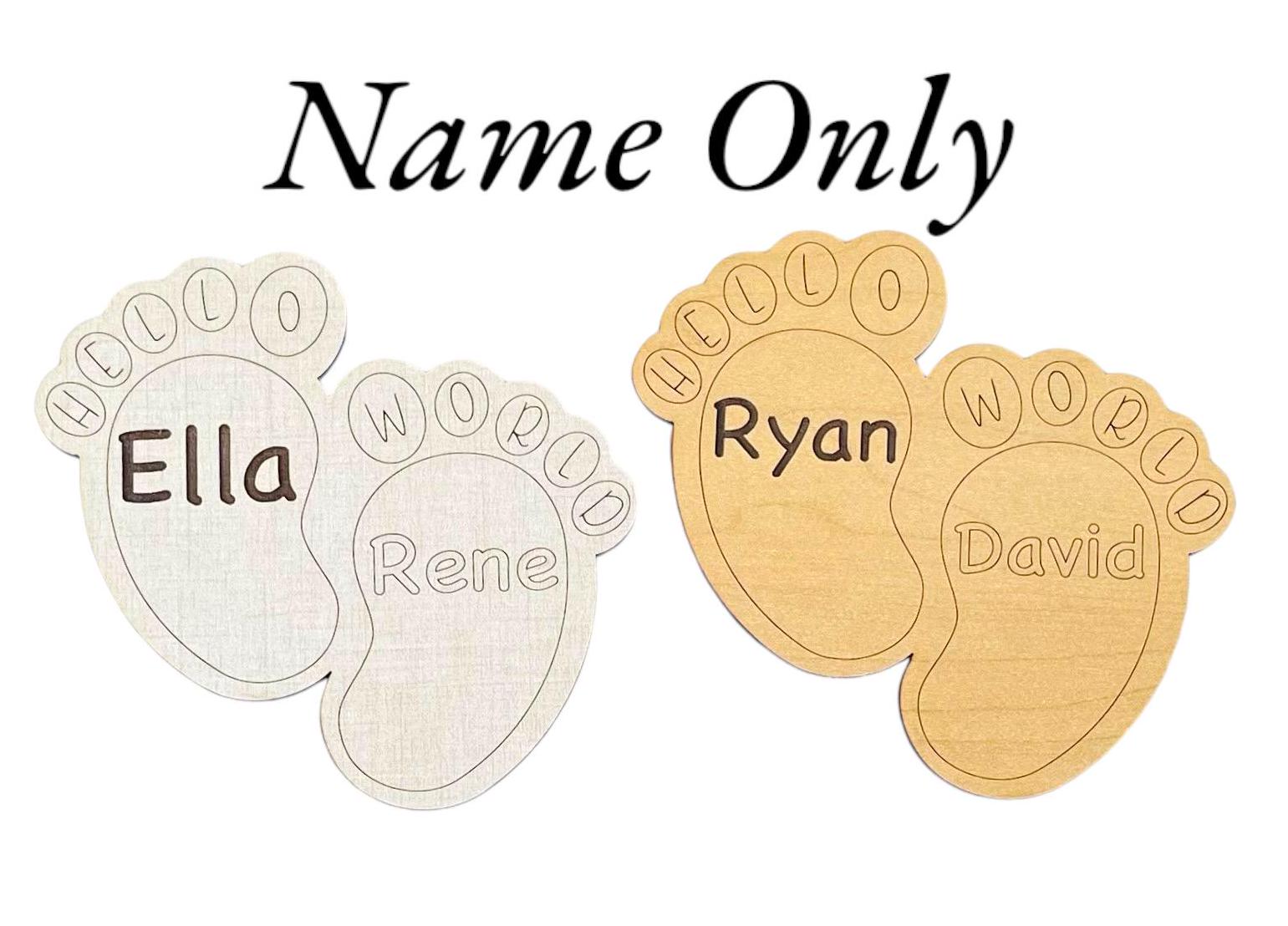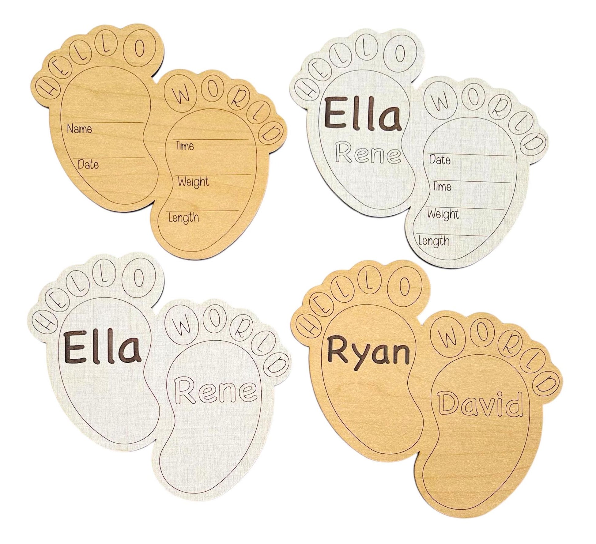Baby feet make for a cute baby birth announcement sign! Precision laser-cut and laser-engraved, with a unique design you'll love, it's a great baby shower gift or hospital or nursery photo prop. Announce your newborn in style and cuteness with a unique, custom item that you'll treasure forever.