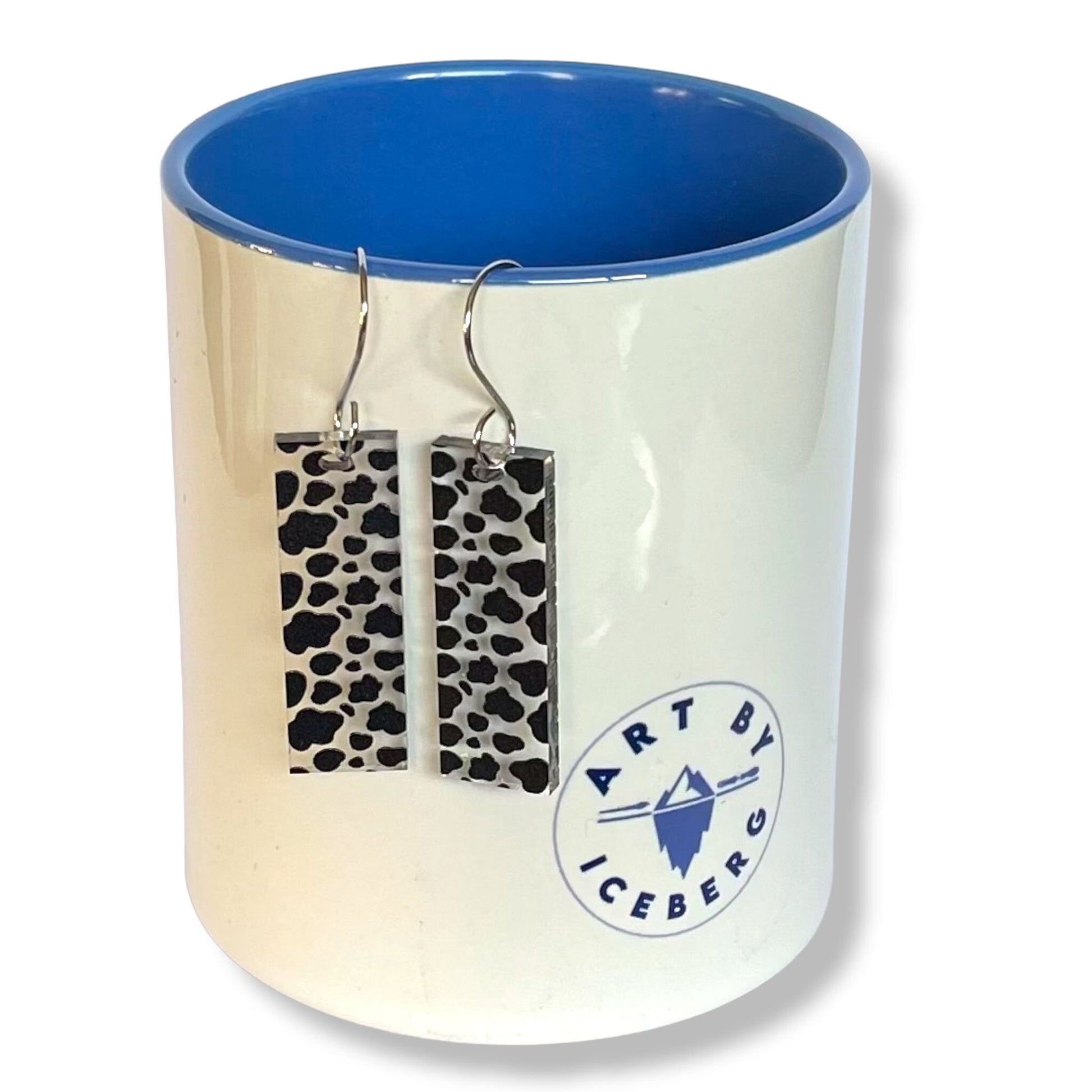 Cow Print Earrings Moo Acrylic Fun Farm Cows Spots Two Pairs for One Price Conversation Piece Ear Wear Clear Black Bovine Farmer Rancher