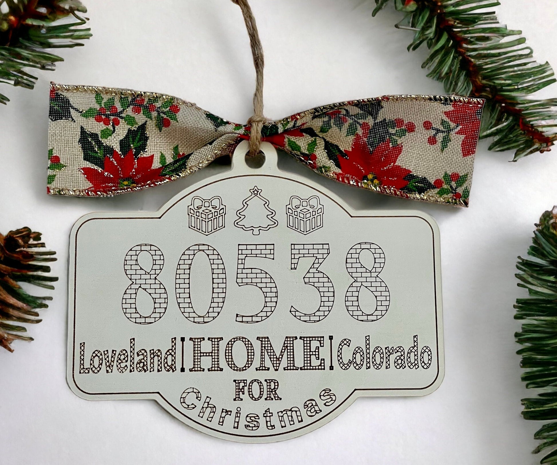 Custom City State ZIP Code White Home For Christmas Ornament Personalized Hometown or City Choice Customized Gift Idea for Parents Children