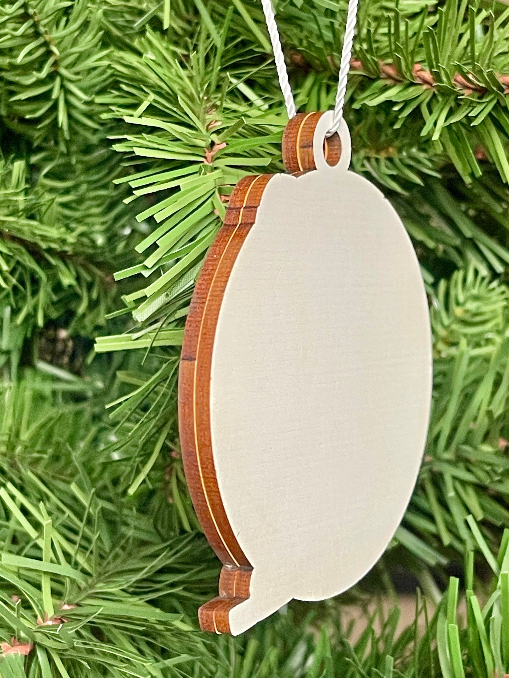 The ornament measures an ideal 3 inches around, with a sustainable birch front and a plain white back. The layers give the ornament a 3D look, and the white back allows you to write a message, add a date, attach a photo... anything you want! The sturdy, substantial ornament is 1/4 of an inch thick.