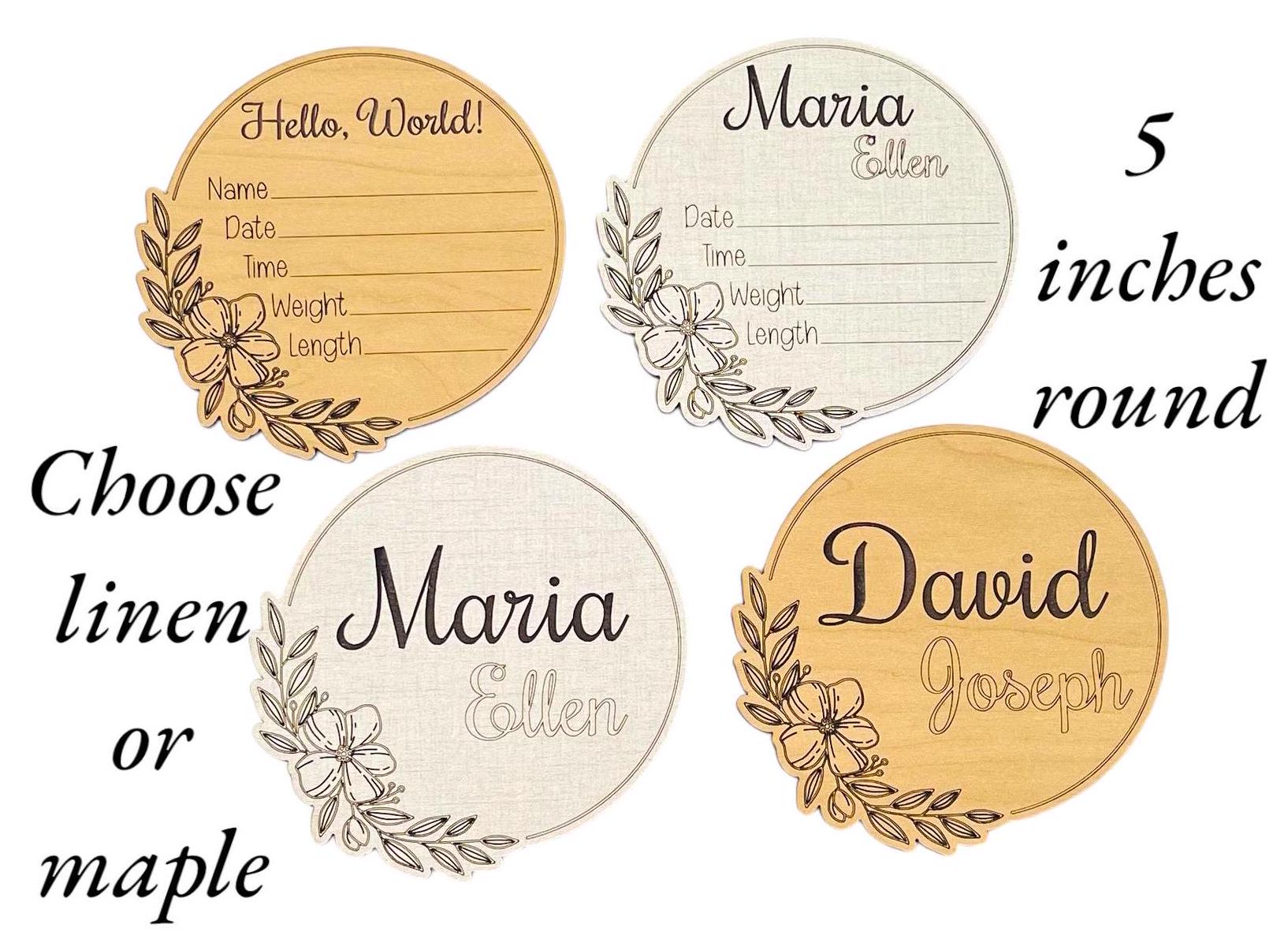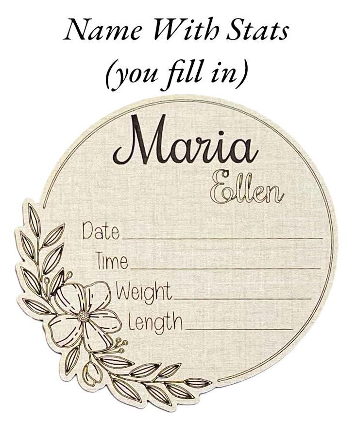Floral Baby Birth Announcement Pretty New Baby Name Stats Hospital Photo Prop Shower Gift Wood Laser Engraved Personalized Flowers Handmade