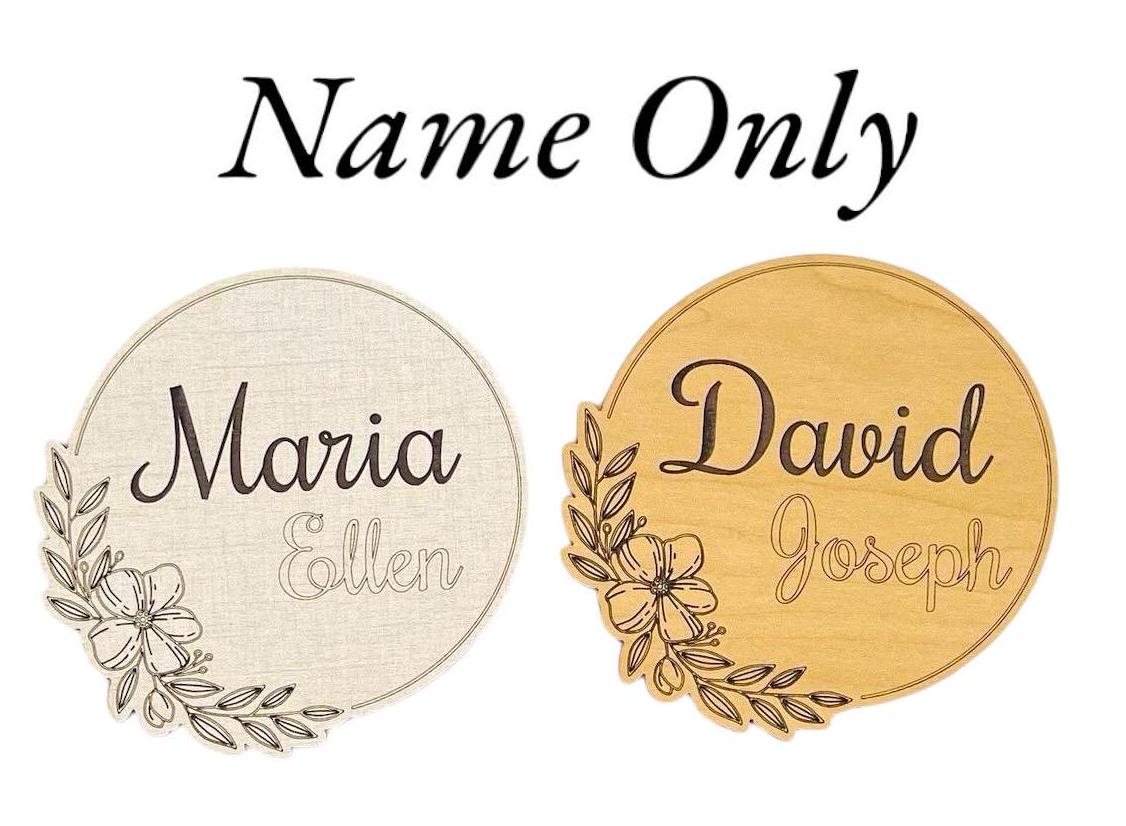 Choose from three styles - NAME ONLY (just the baby name with the theme), NAME WITH STATS (your baby's name engraved, with a stat area for you to fill in), or STATS ONLY (you fill in name and stats).