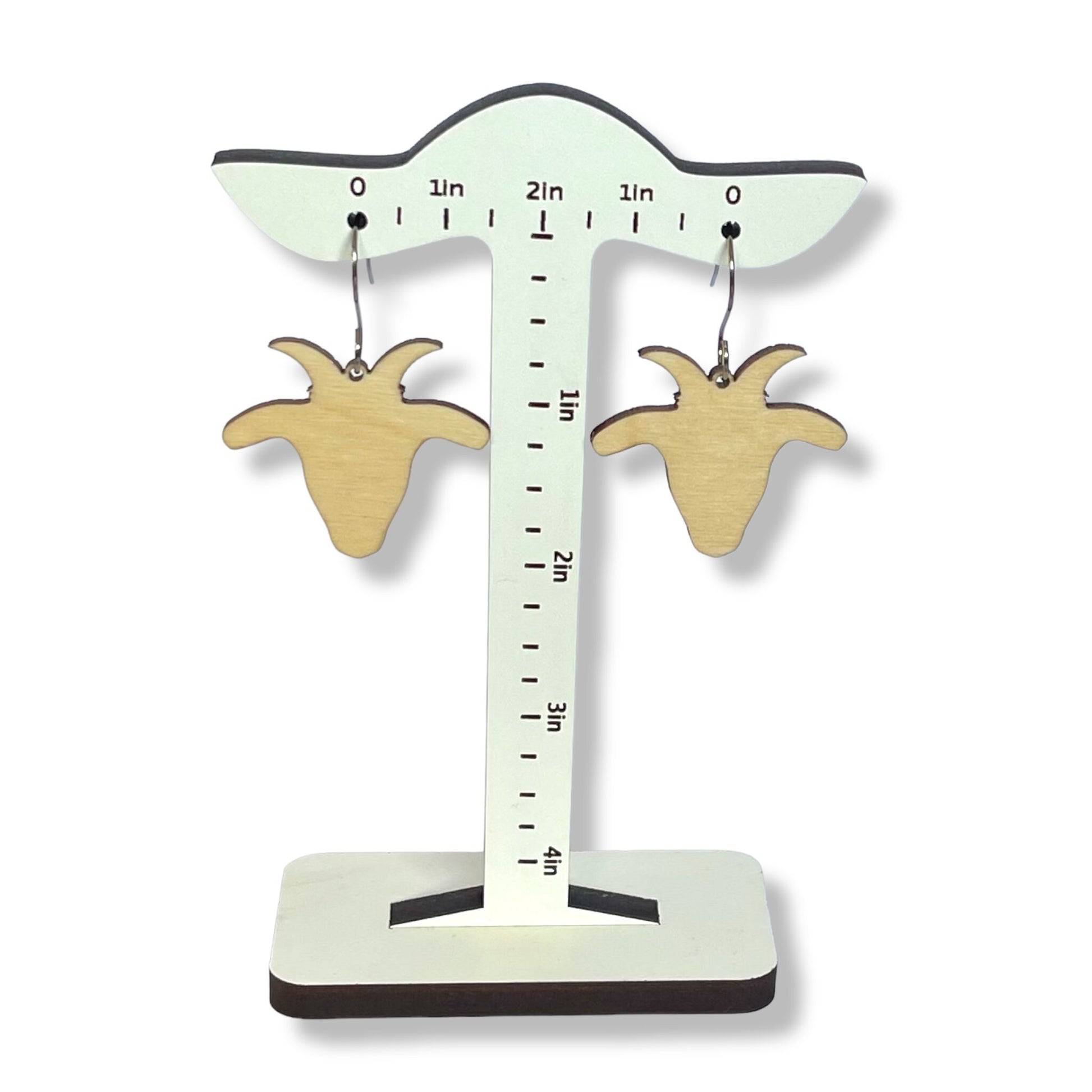 These earrings are very lightweight, 1/8 inch Baltic birch. Ideal for a farmer, goat fan, vet, or animal lover. A true conversation piece.
