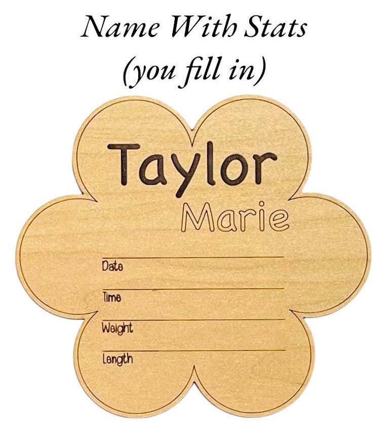 Hospital Nursery Photo Prop Baby Name Sign Flower Boho Birth Announcement Stats Fun Baby Shower Gift Personalized Engraved Handmade Keepsake