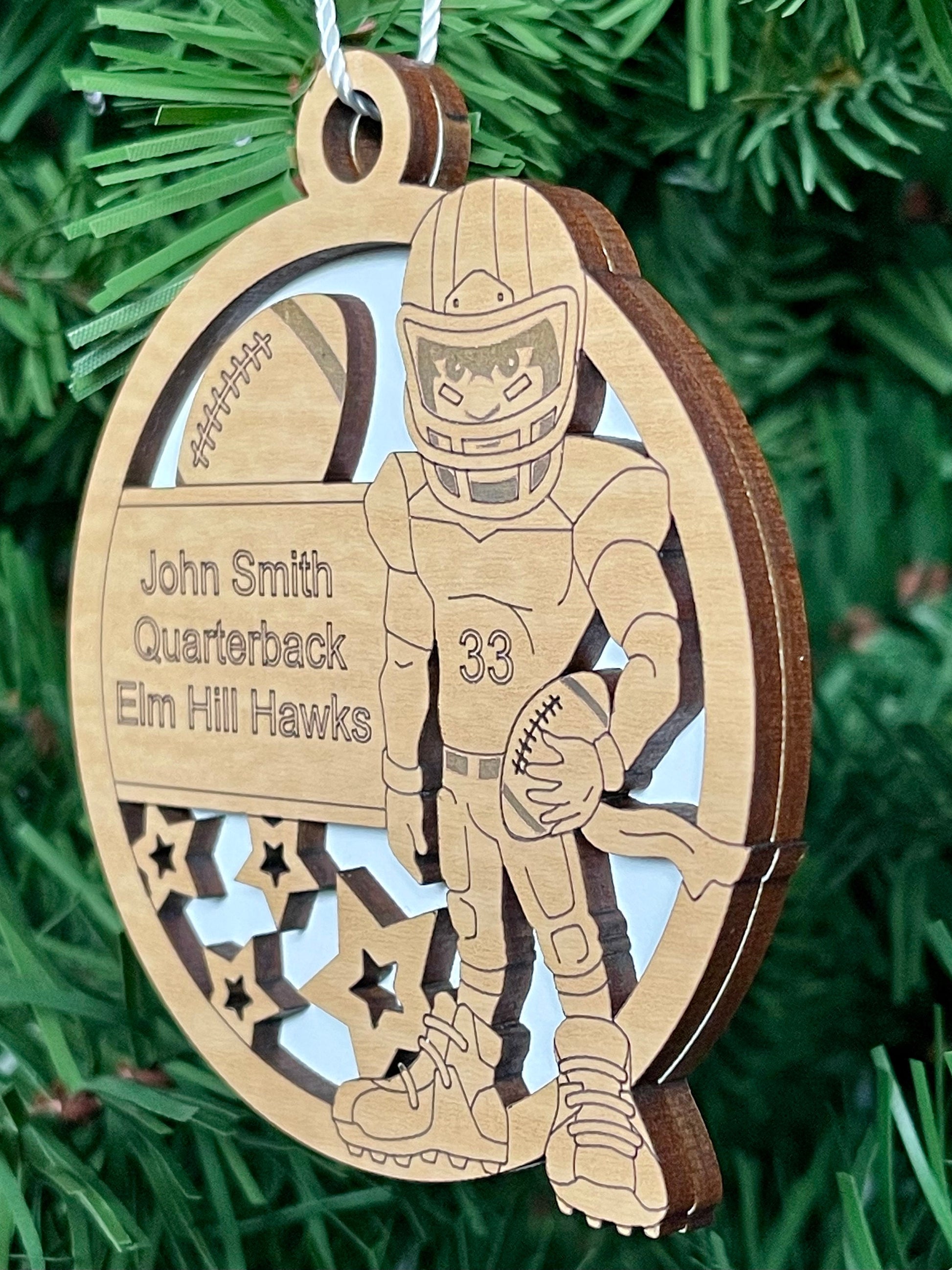 Personalized Football Ornament Personalized Male Player Name, Number, Position, School, Stats, Etc. 3D Layered Year-Round Handmade Gift Idea
