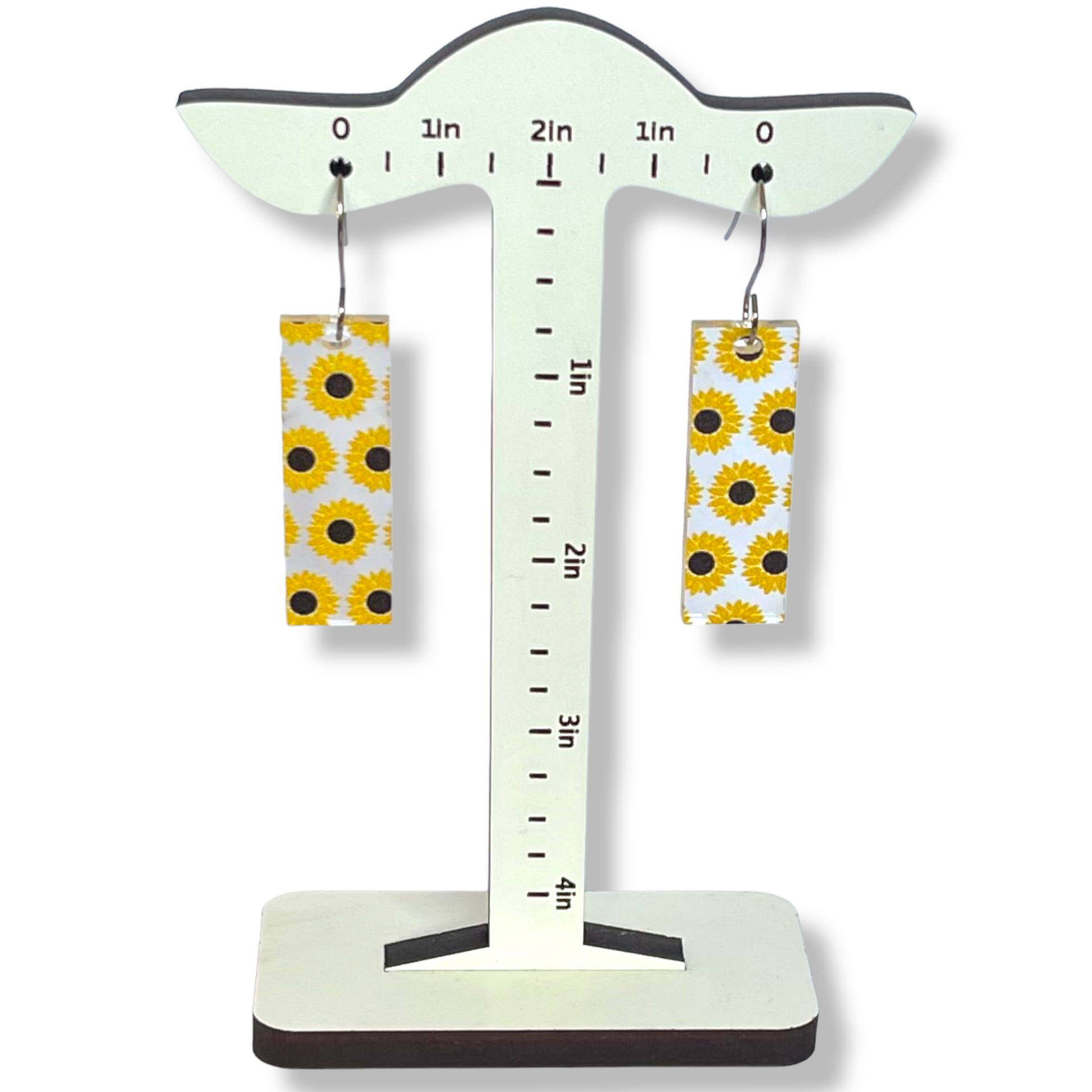 Yes, you get TWO PAIRS of sunflower-themed earrings for the price! One pair is teardrop-shaped, and the other pair is bar-shaped, as shown. Measurements are shown in the photos.