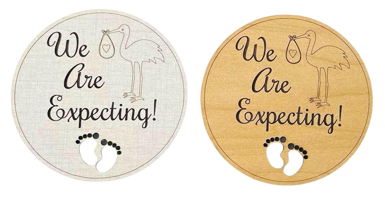 We Are Expecting Pregnancy Announcement Sign Cute Stork Delivery New Baby Pregnant Laser Engraved Cut Feet Fun Wood Round Photography Prop